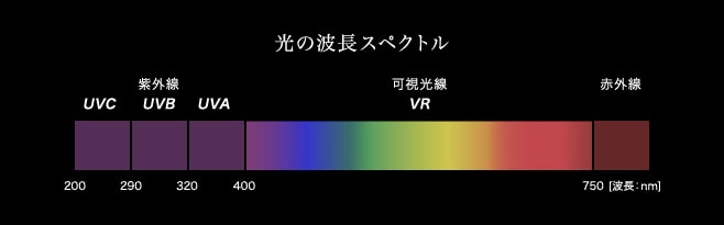 紫外線について、簡単に説明させて頂きます。 まずは、下記画像をご覧ください。紫外線はその波長の大きさにより3種類に分けられます。